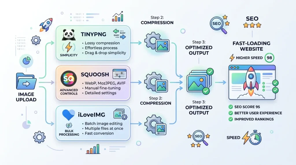 For the majority of users, TinyPNG is the top choice for its “set-and-forget” simplicity and reliable results. However, if you require granular control over encoding settings or need to work with next-gen formats like AVIF, Squoosh is considered the premier professional option.