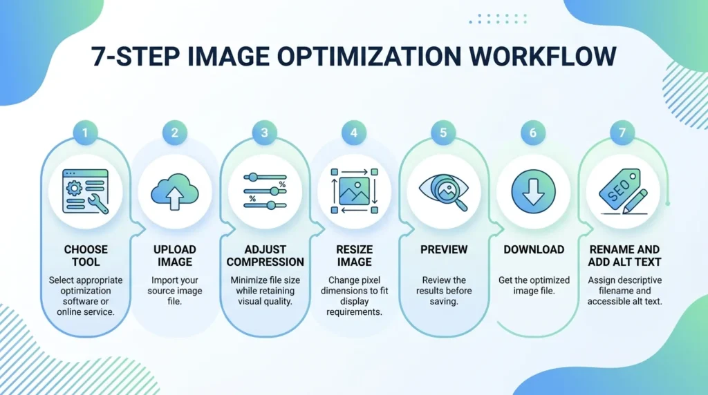 To get the most out of free online tools to compress and resize images, follow this streamlined action plan for every piece of content you produce: