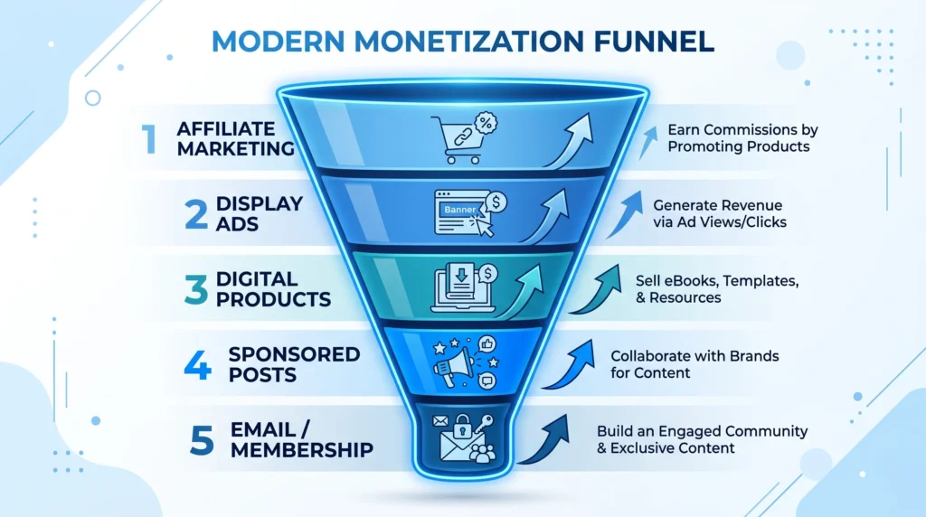 - Sponsored Posts and Brand Deals — Brands will pay to reach your audience once you have built trust and traffic