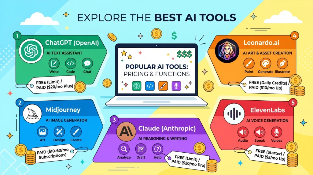 Best AI Tools to Make Money Online with AI Tools for Beginners (Free & Paid)
